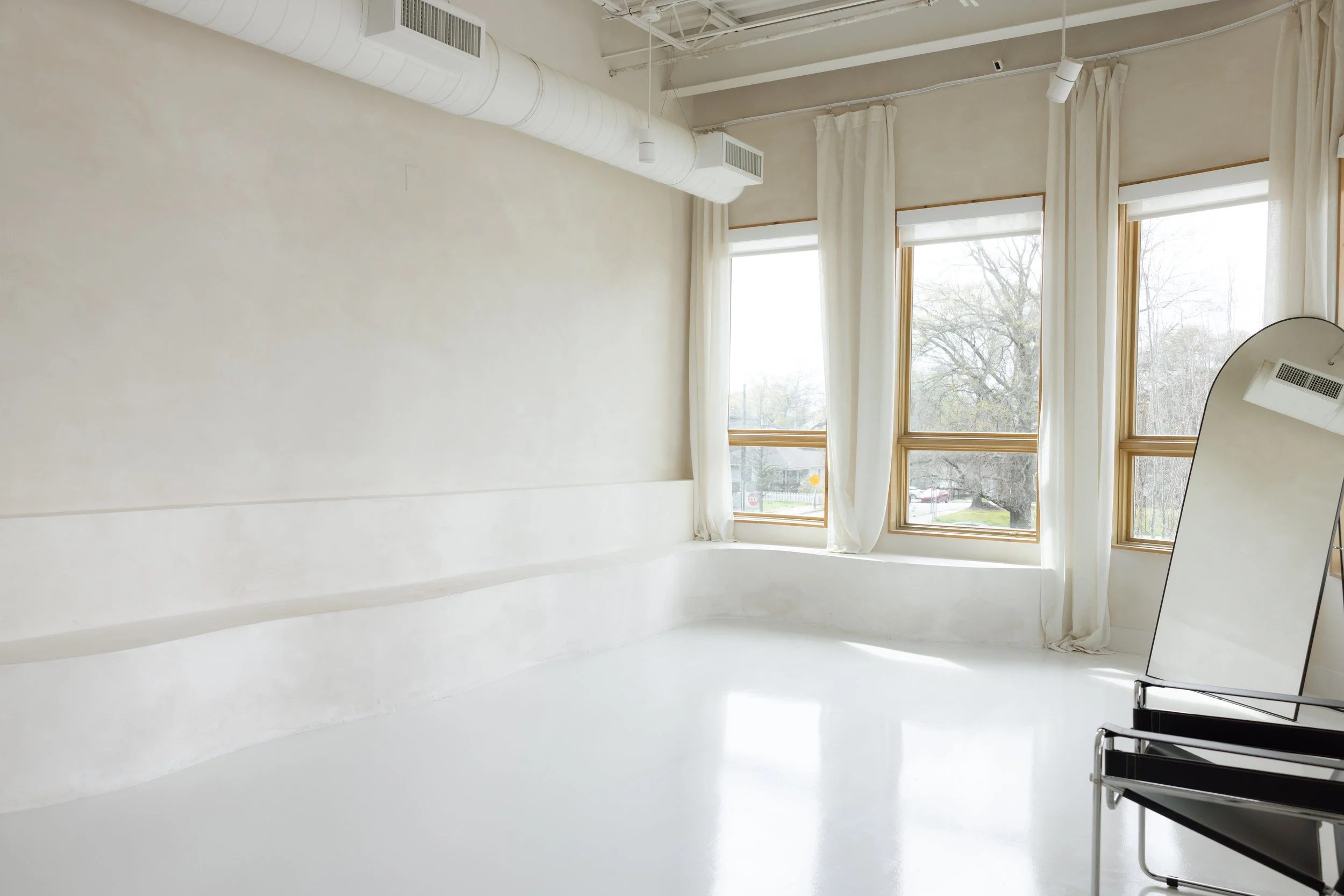 Our 12 north- and west-facing windows offer abundant natural light from morning to evening. The studio is filled with soft, even daylight throughout the day, and rich, dramatic shadows emerge as the sun sets. Each window is equipped with light-dampening shades, giving you full control over the lighting environment.